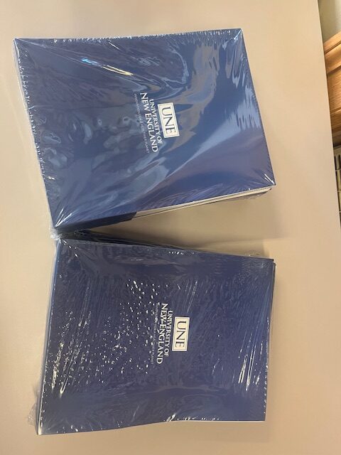 80 UNE, blue, 2-pocket folders. Please contact Mary Fraser (mfraser3@une.edu) if you are interested in these items.