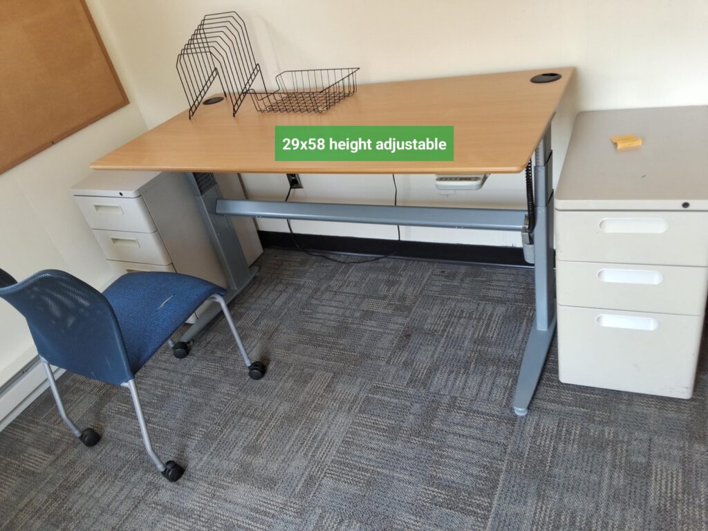These desks are being stored by Facilities Management on the Biddeford Campus – please contact Josh Jacobs (jjacobs3@une.edu) regarding availability.