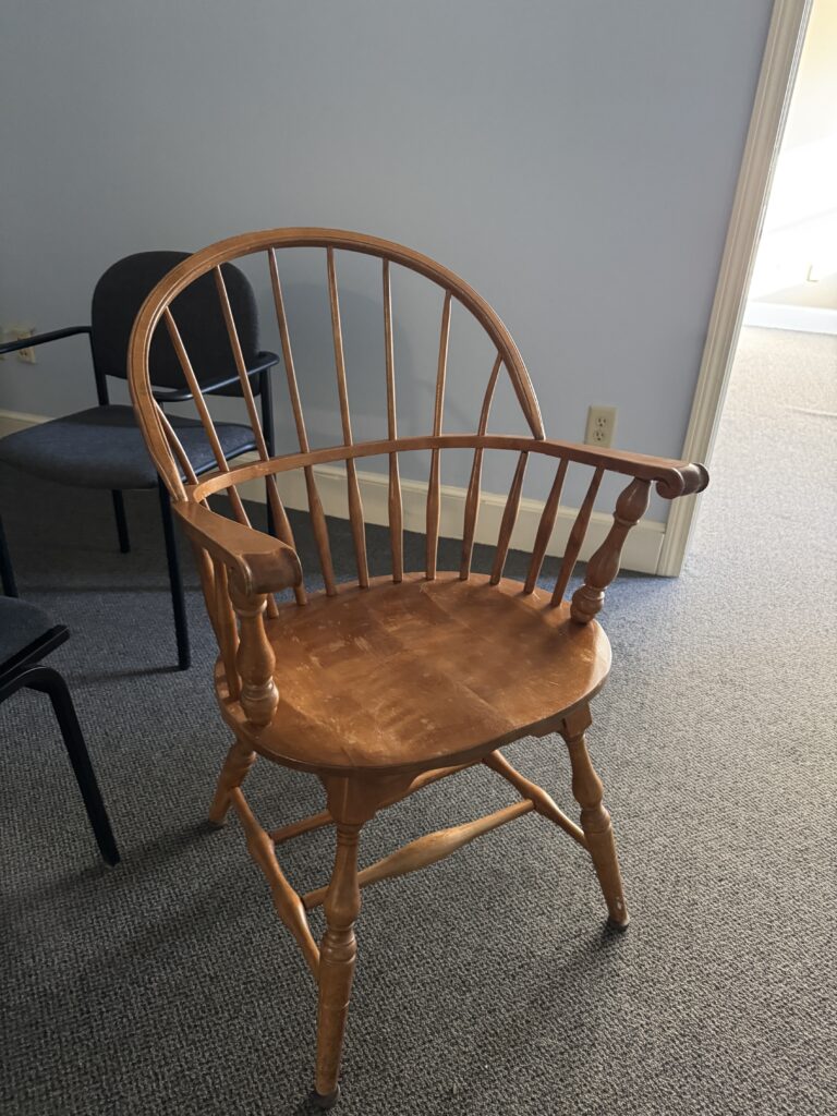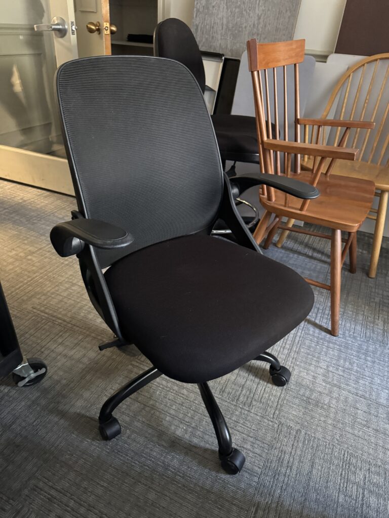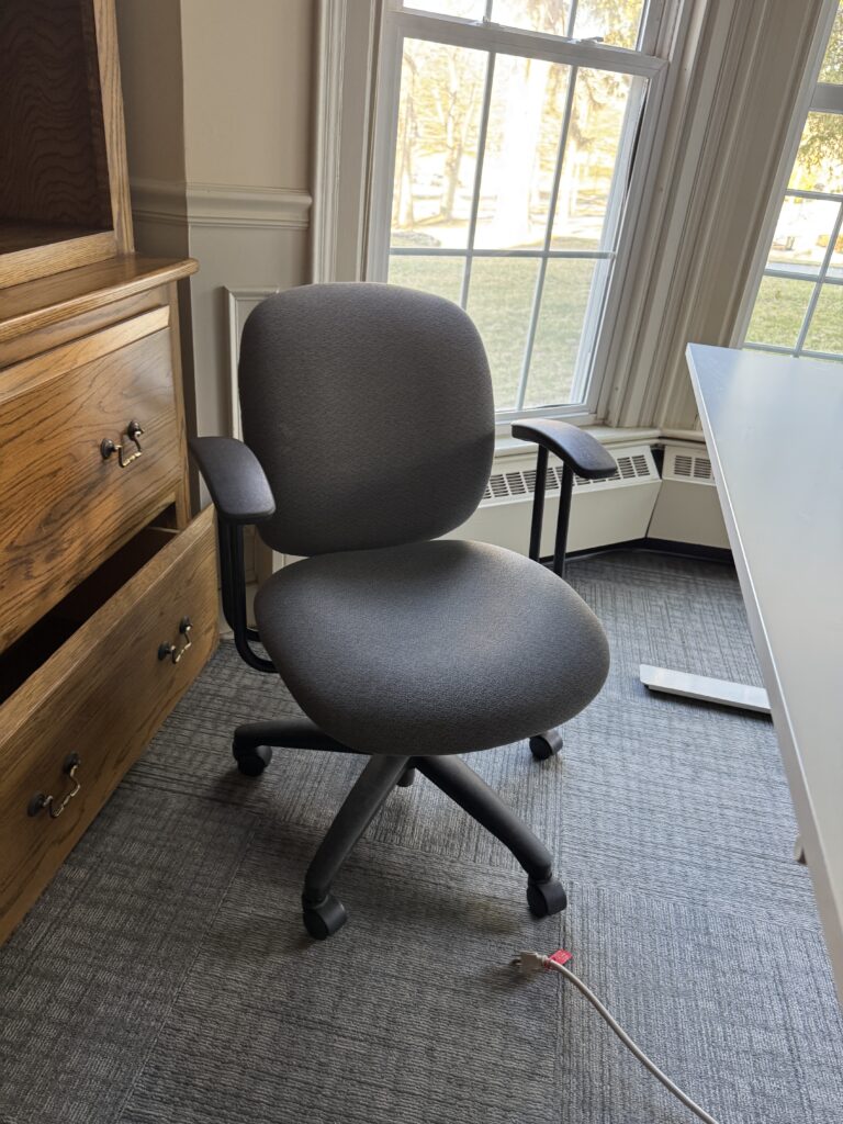 There are several items still available in Stella Maris Hall that can be repurposed in your space. There are a number of chairs shown below, filing cabinets, wooden conference room tables (not shown), height adjustment desk surfaces (not adjustable desks), and Windsor chairs. If you are interested in any of these items, please contact Facilities Management (facilities@une.edu) to arrange transfer, or complete a workorder.