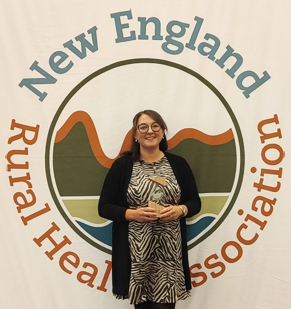 Micaela Maynard, M.Ed received the Rising Rural Star Award at this year’s New England Rural Health Association (NERHA) Conference in Groton, CT earlier this month. This award recognizes the dedication and profound impact of emerging leaders who are making significant strides in improving the health and well-being of rural communities across New England. Micaela serves on the NERHA Board of Directors and was accepted into the 2025 Cohort of Rural Health Leadership Institute earlier this year. She is the Program Manager for the Maine AHEC Scholars program in the Center for Public Health Practice, part of the School of Public and Planetary Health.