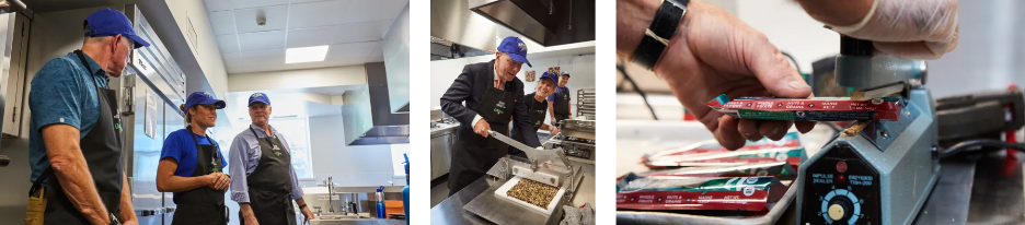 The first production of SeaMade bars on the UNE campus occurred on August 21, 2024 in the Decary Teaching Kitchen. Tara and Mark engaged a select group faculty and professional staff to produce and package SeaMade Bars. UNE’s own Deirdre Fleming Stires covered the event and wrote a story on how UNE will produce the sweet-and-savory, cranberry-kelp bars.