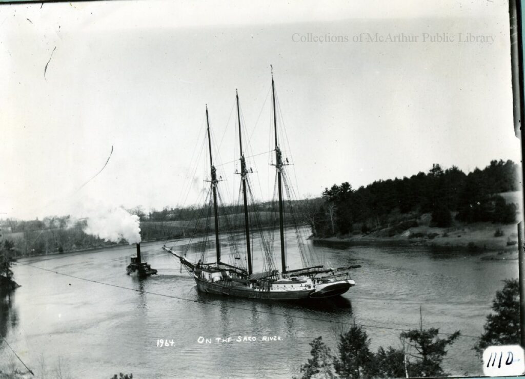 Throughout the nineteenth century, tall ships moved up and down the Saco as far as the falls. They were built and repaired in the Biddeford shipyards. Loaded and unloaded near the mills.