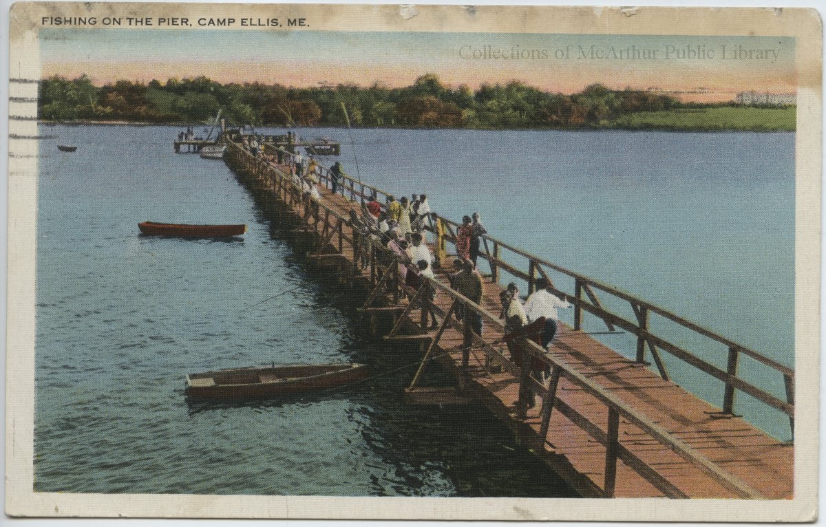 The iconic Camp Ellis fishing pier evidently welcomed tourist ferries, promised beautiful views, and offered an excellent spot for fishing. (Image courtesy McArthur Library, Biddeford, Maine)